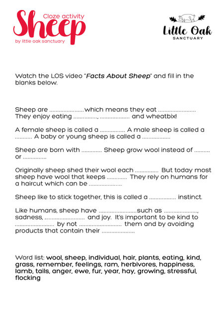 Watch our educational videos "Facts about sheep" and "Are Sheep Silly" and then test what you've learnt by completing our word search, crossword puzzle or cloze activities. Or download our gorgeous colouring in pages and craft activities and let your creativity shine! Some other sheep related activities you might like to do include: